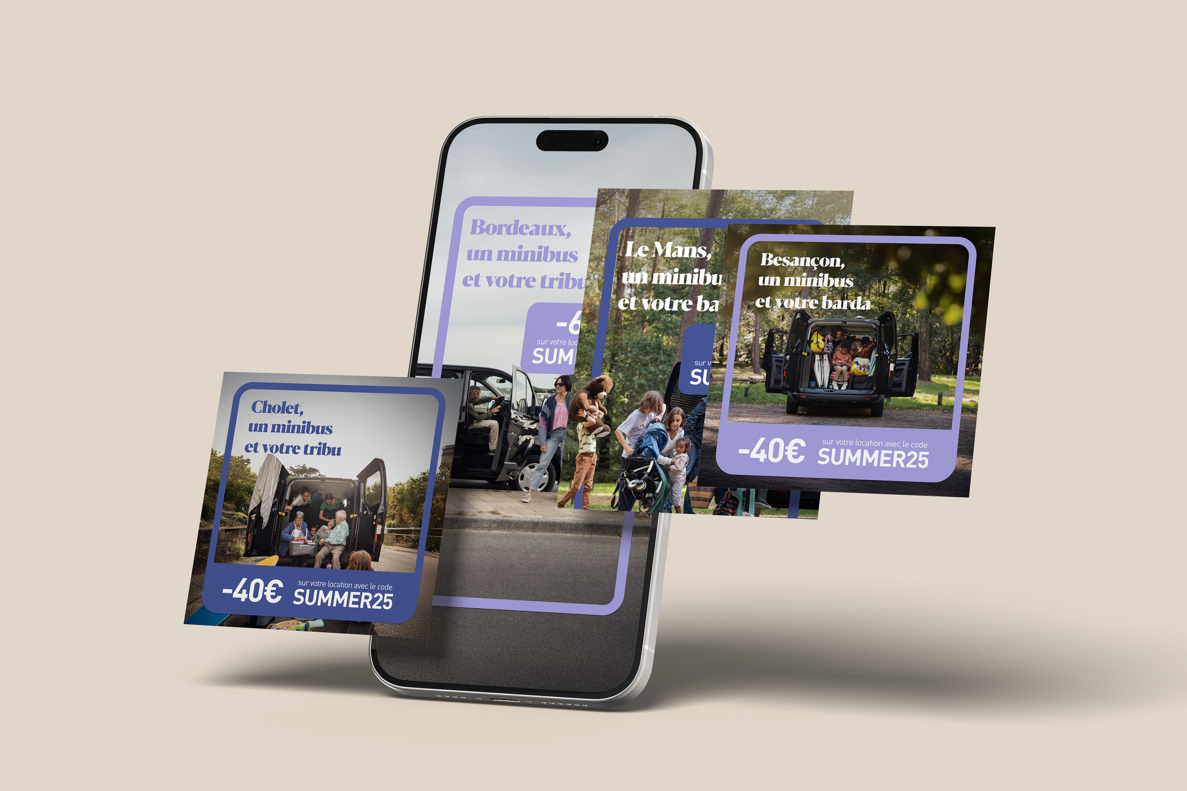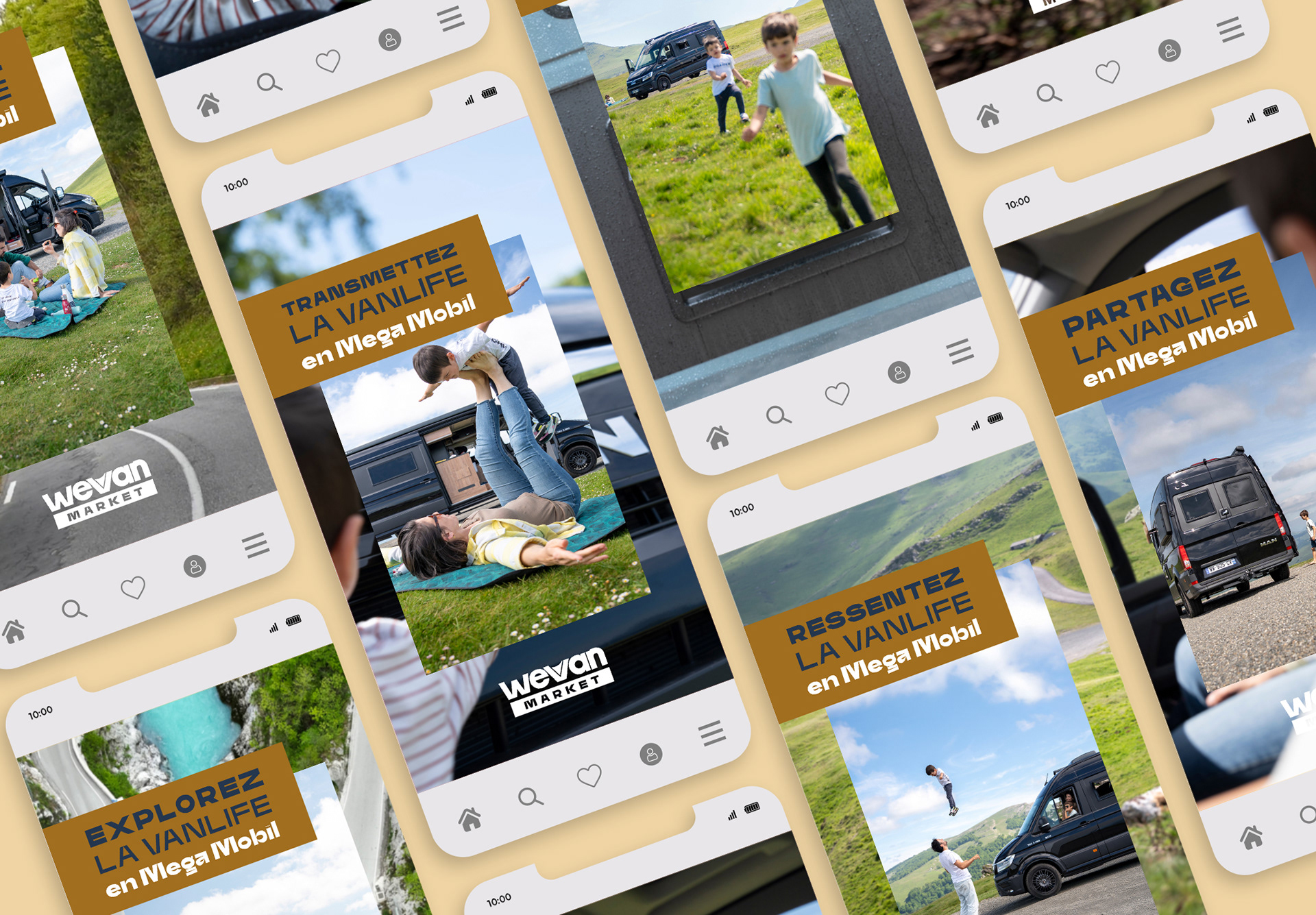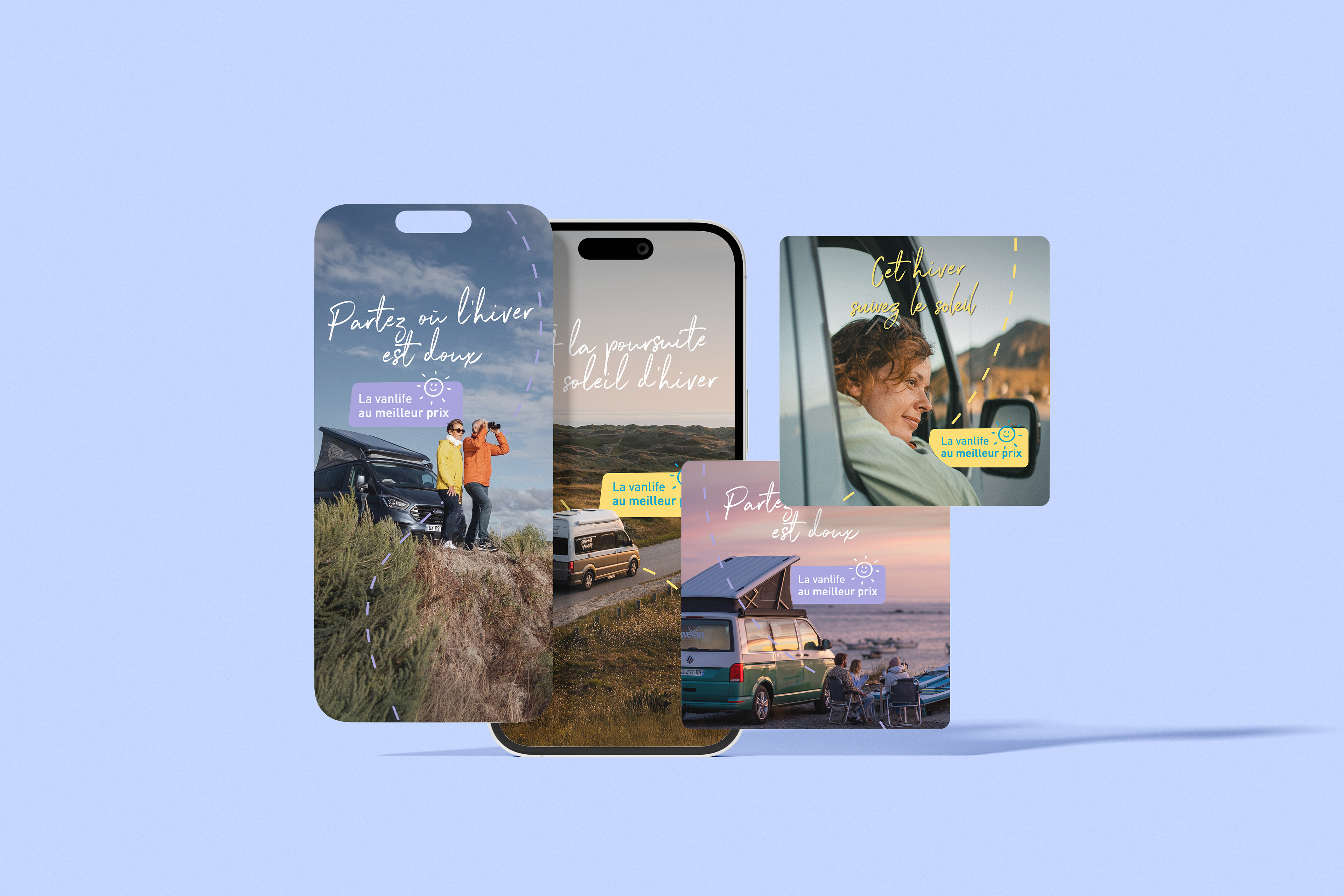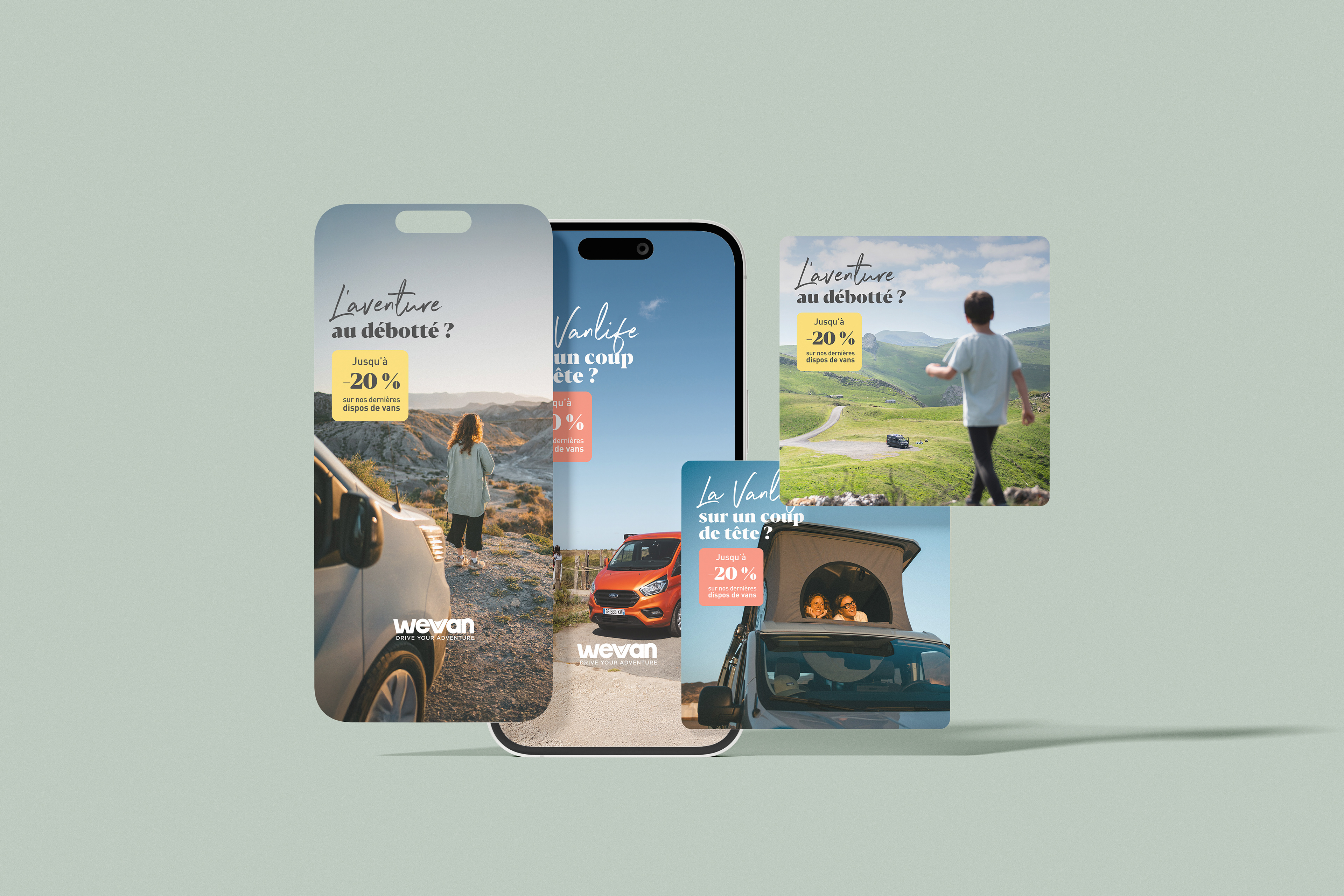 Campagnes social ads 2025 pour les différentes entités du groupe WeVan, spécialiste de la location & vente de campervans et minibus. Client : WeVan