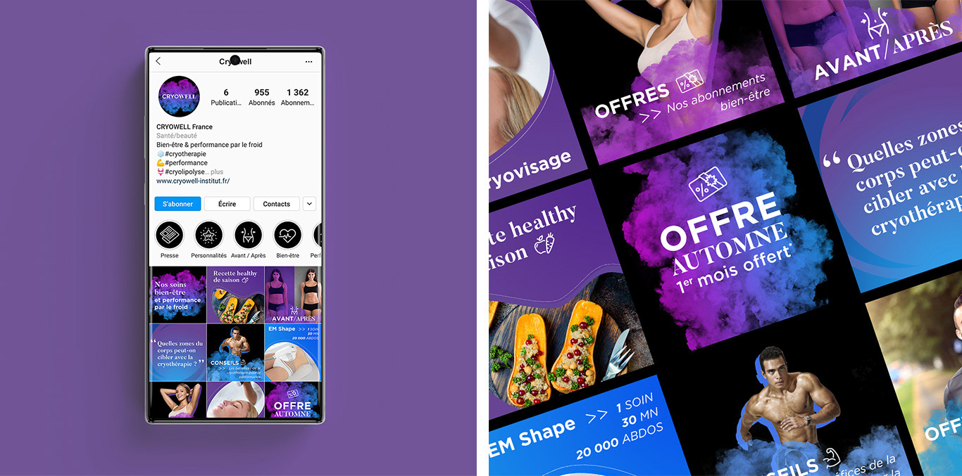 Créer une image de marque pour les instituts de cryothérapie "Cryowell". Identité visuelle / branding / Social media / Store Client : Cryowell Agence : La 5ème Étape