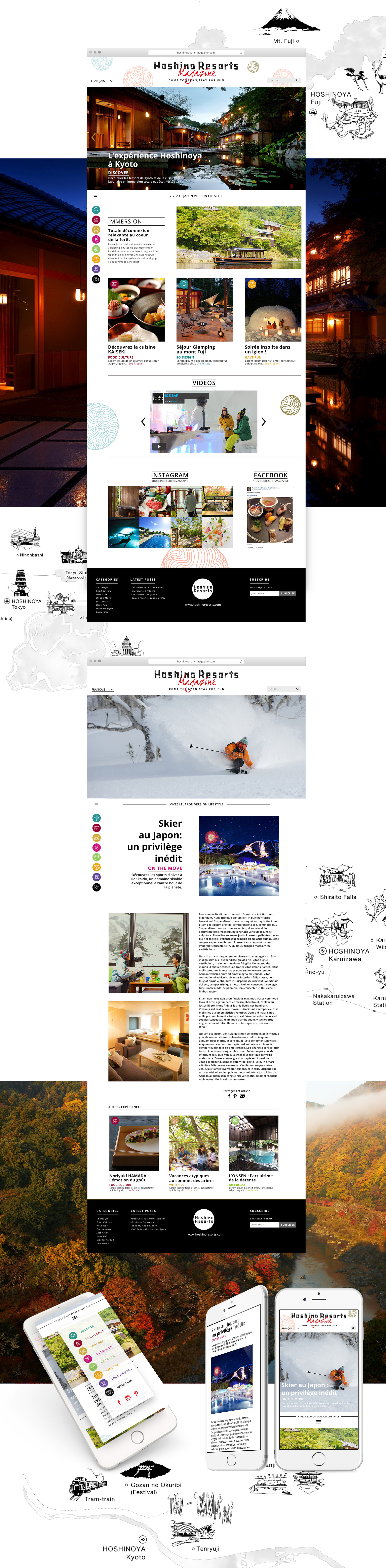 Direction artistique du magazine web du groupe d'hôtellerie de luxe Hoshino Resorts. Webdesign responsive. Client : Hoshino resorts Agence : La 5ème Étape