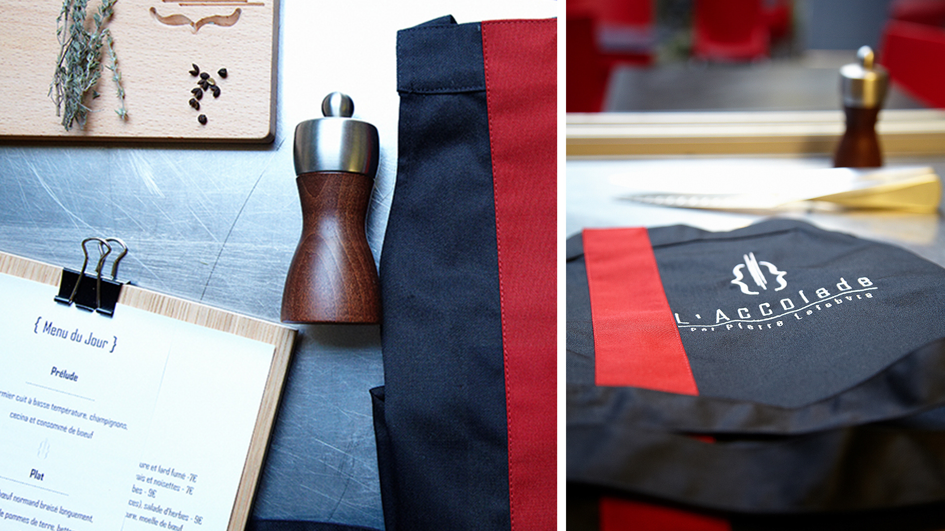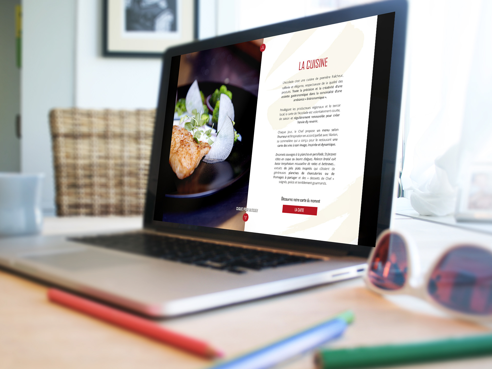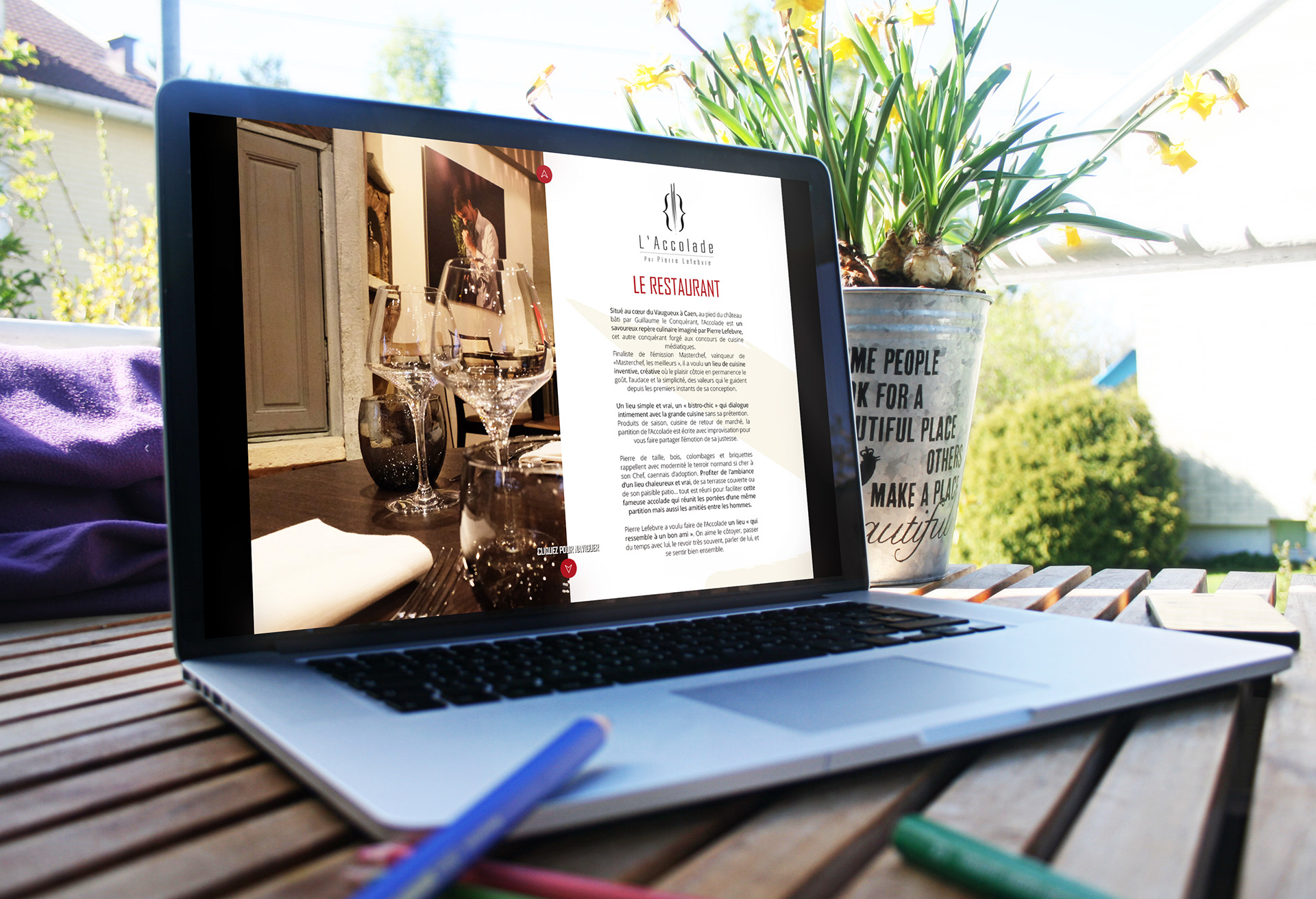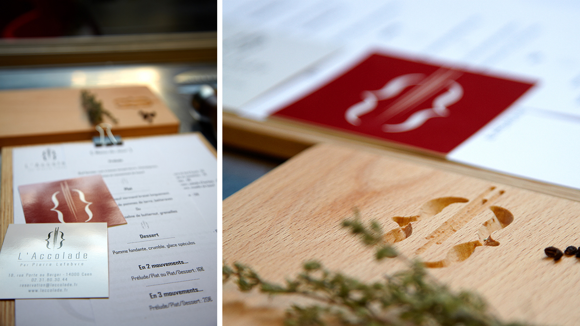 Identité visuelle pour le restaurant de Pierre Lefebvre à Caen. Logotype, branding, scéno, webdesign responsive du site.