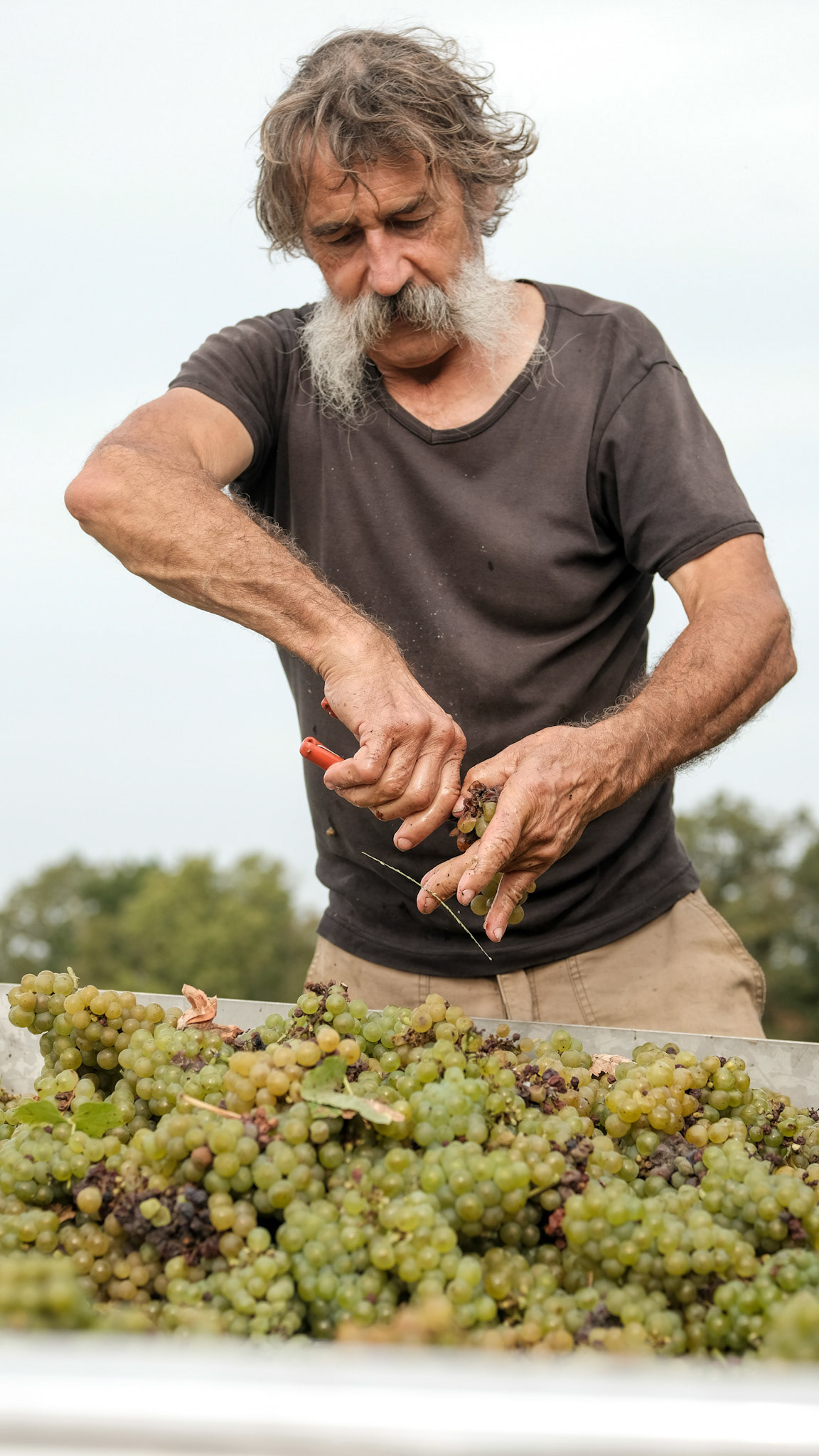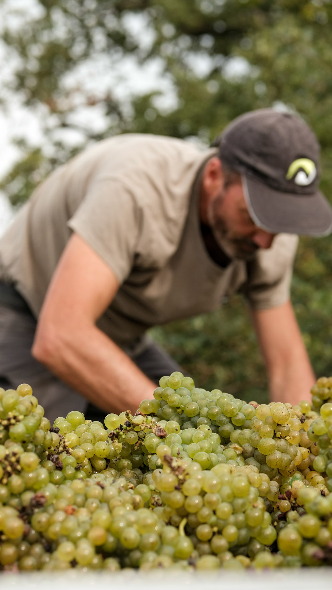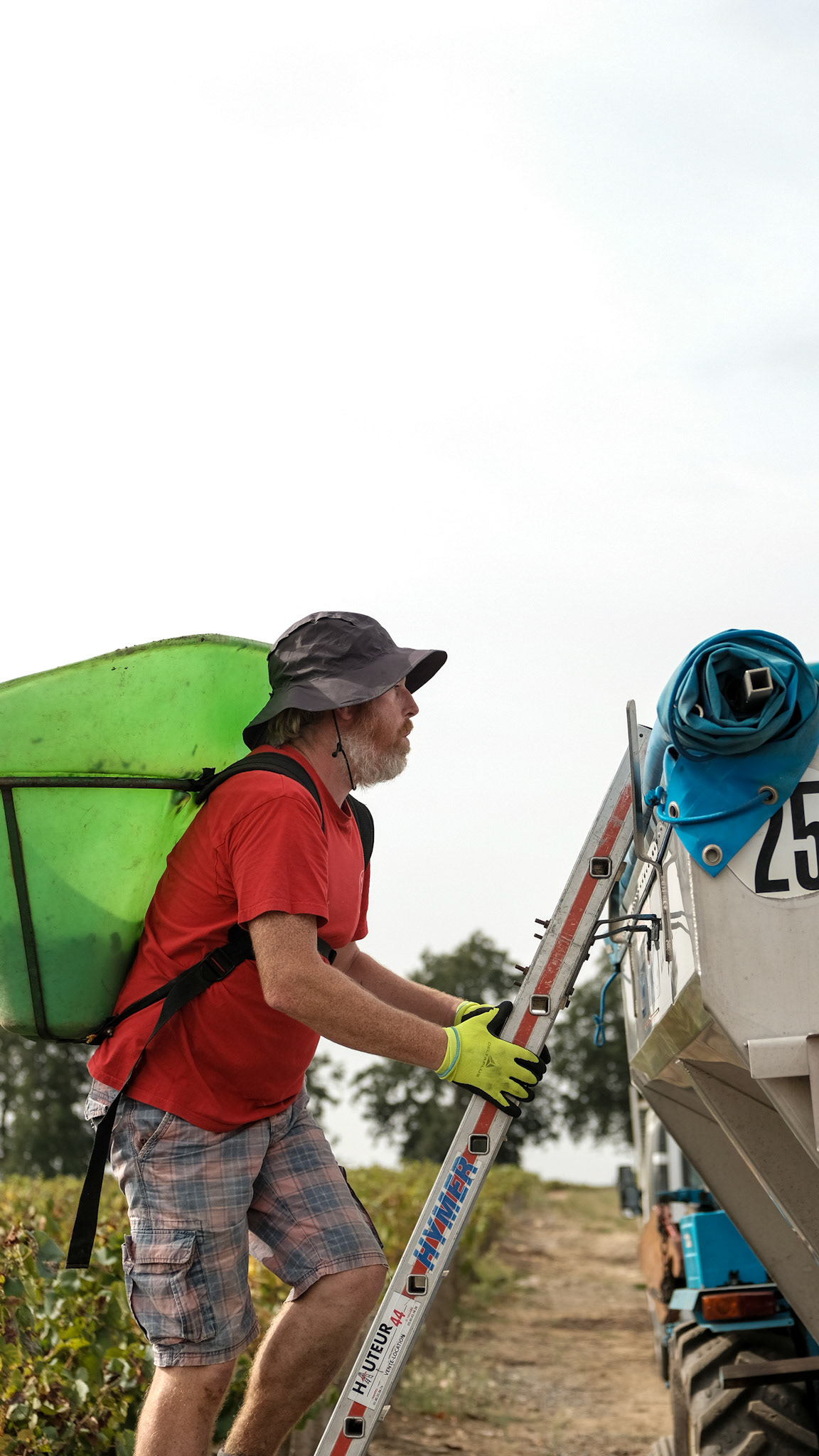 Photo reportage à destination des réseaux sociaux et du web pour les domaines Landron durant les vendanges. Prises de vues extérieures, au chai et en cave.