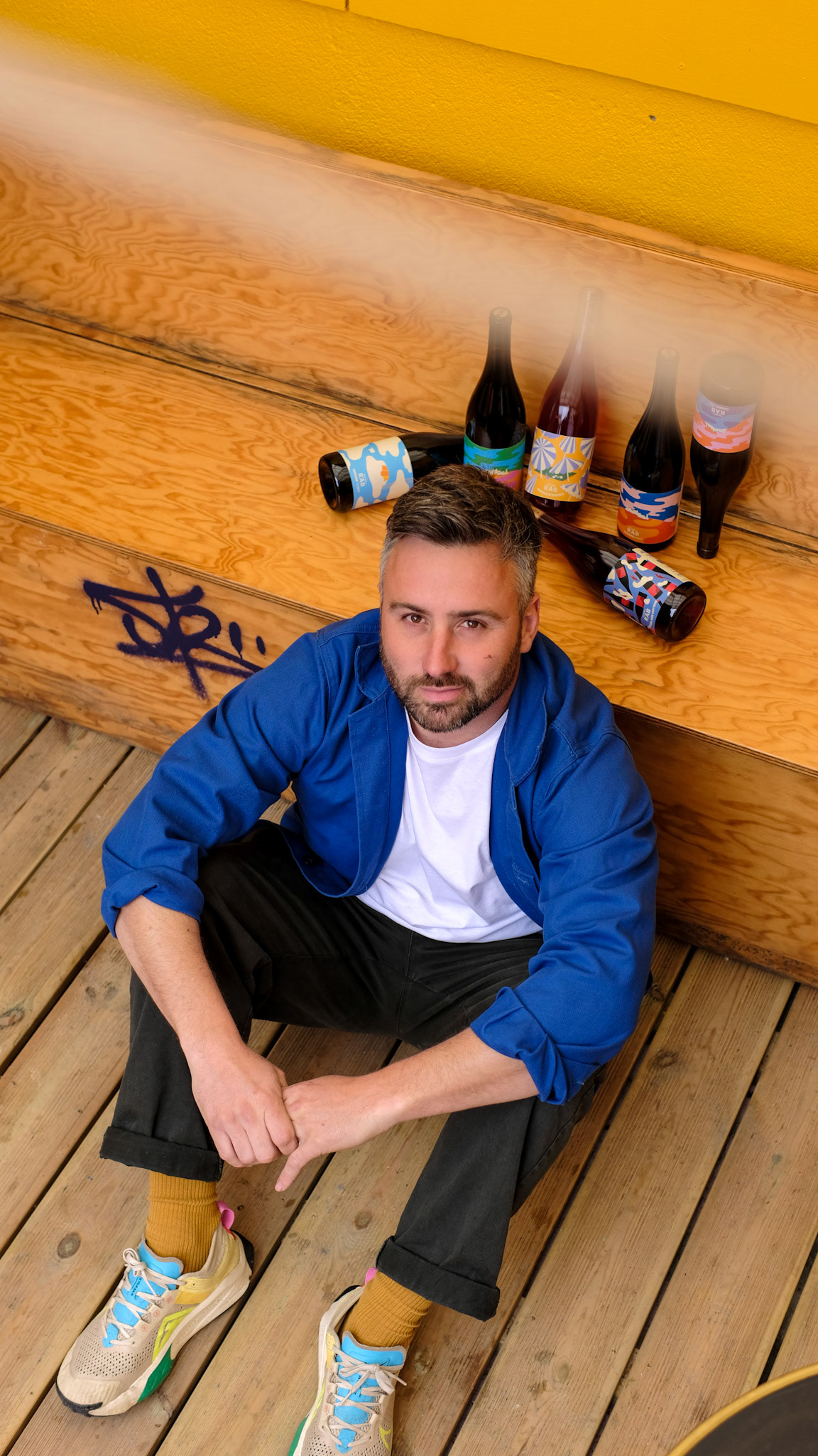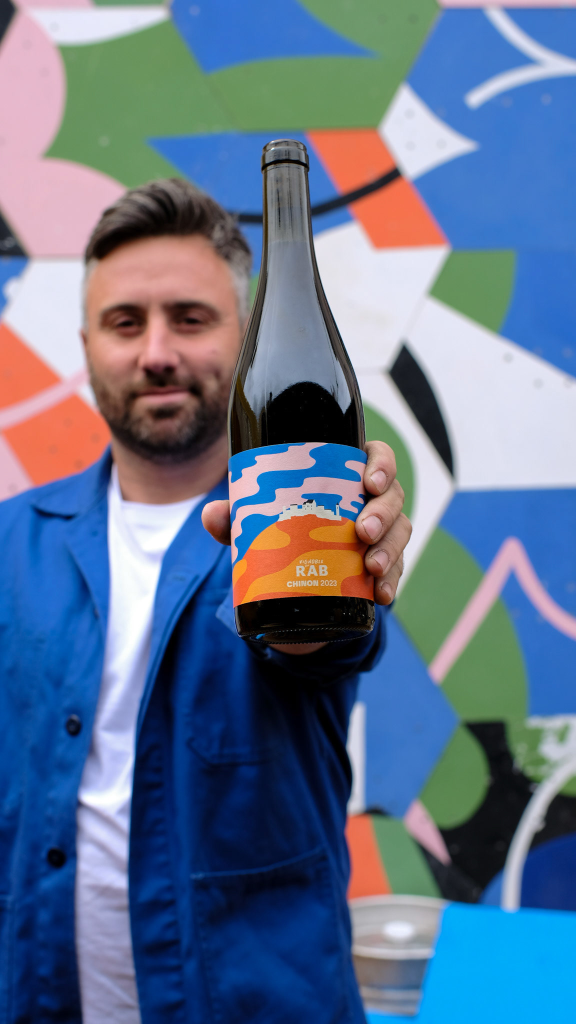 Shooting portrait et bouteilles à destination de la presse et des réseaux sociaux ( Tanin Magazine ) avec Nicolas, vigneron à Cravant les Coteaux.